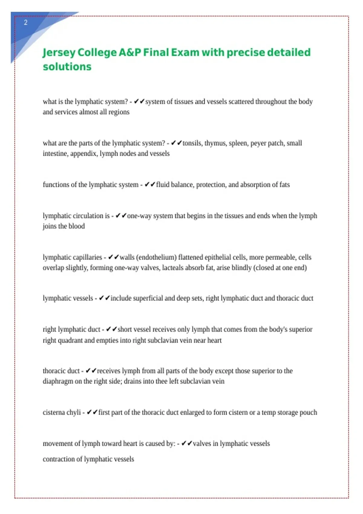 Jersey College A&P Final Exam with precise detailed solutions