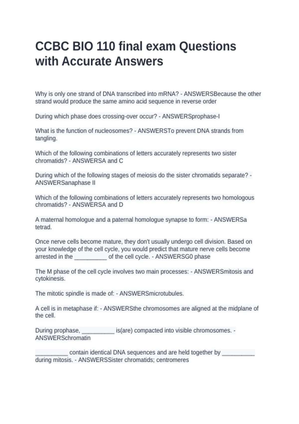 Why is only one strand of DNA transcribed into mRNA? - ANSWERSBecause the other