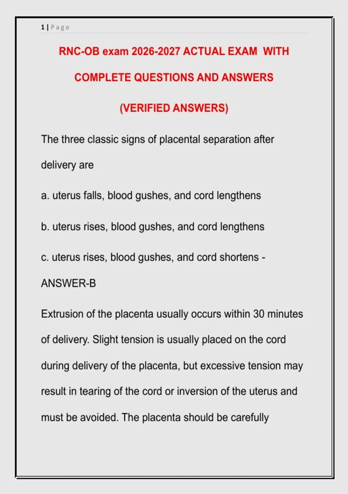 RNC-OB exam ACTUAL EXAM WITH COMPLETE QUESTIONS AND ANSWERS (VERIFIED ANSWERS)