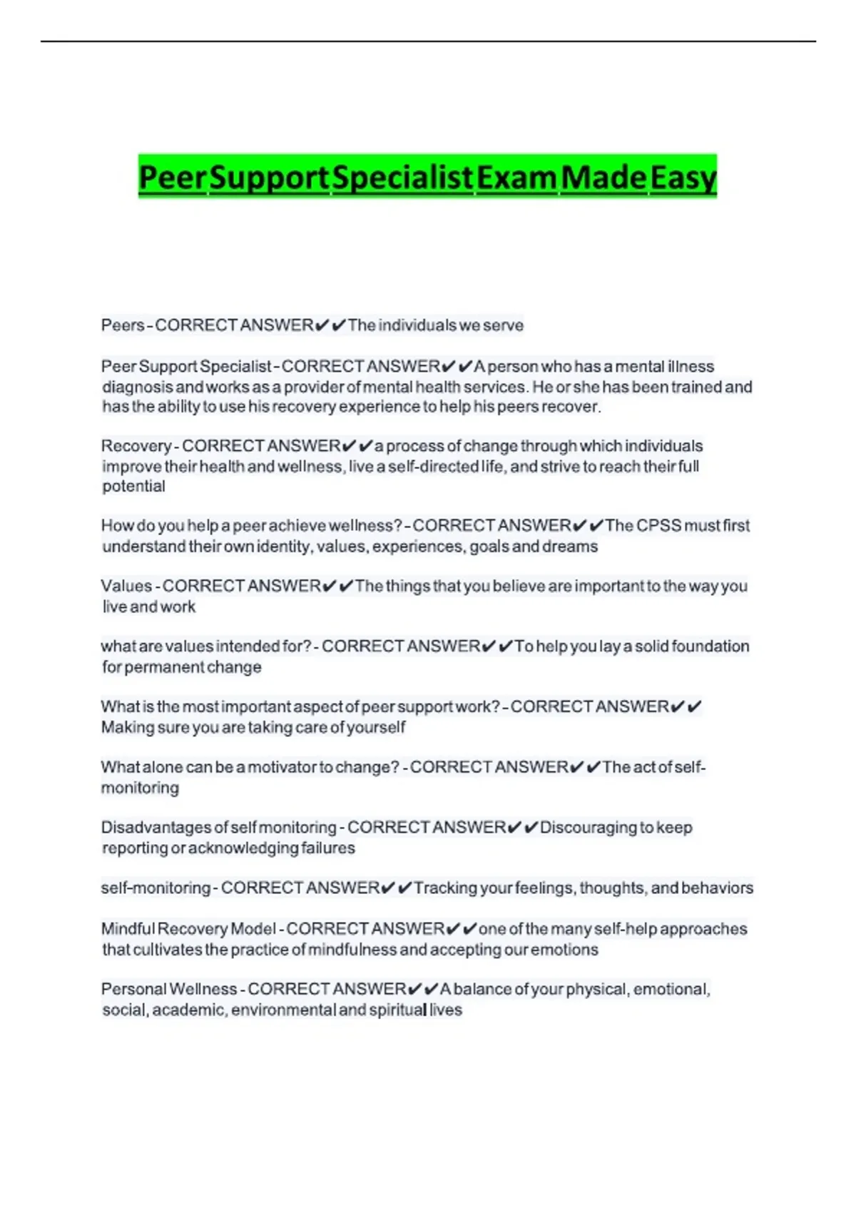Peer Support Specialist Exam Questions With 100% Correct Answers 2024PePeer Support Specialist Exam Questions With 100% Correct Answers 2024er Support Specialist Exam Questions With 100% Correct Answers 2024Peer Support Specialist Exam Questions With 100% Correct Answers 2024Peer Support Specialist Exam Questions With 100% Correct Answers 2024