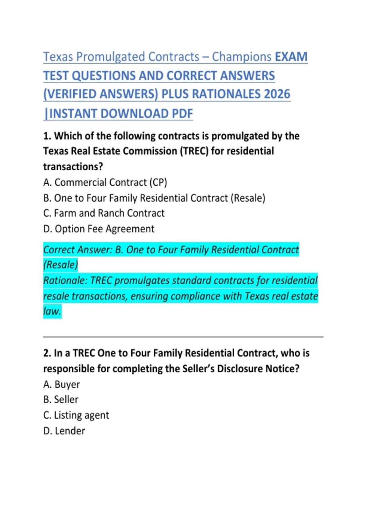 Rationale: The Seller must complete the Seller’s Disclosure