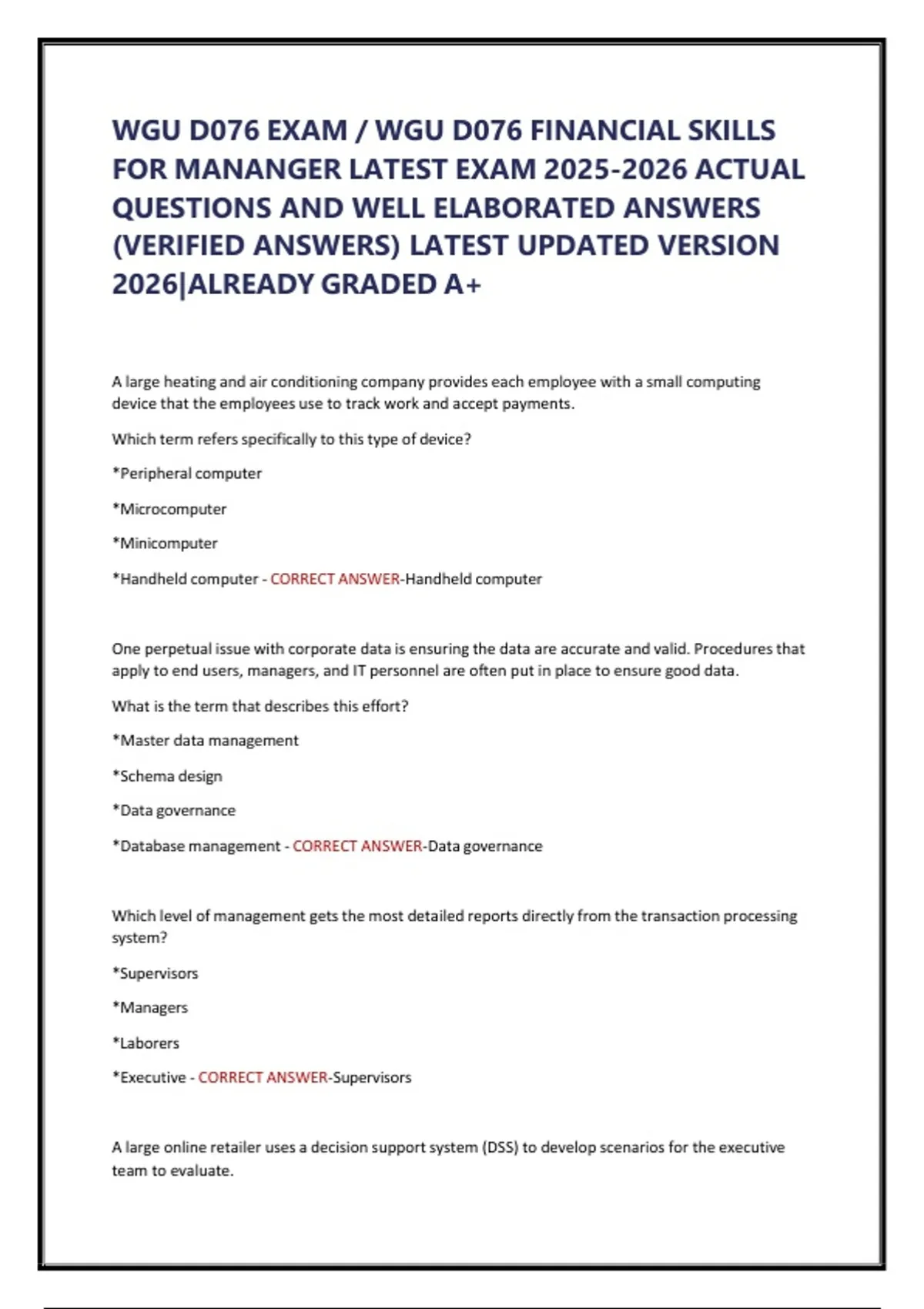 WGU D076 EXAM / WGU D076 FINANCIAL SKILLS