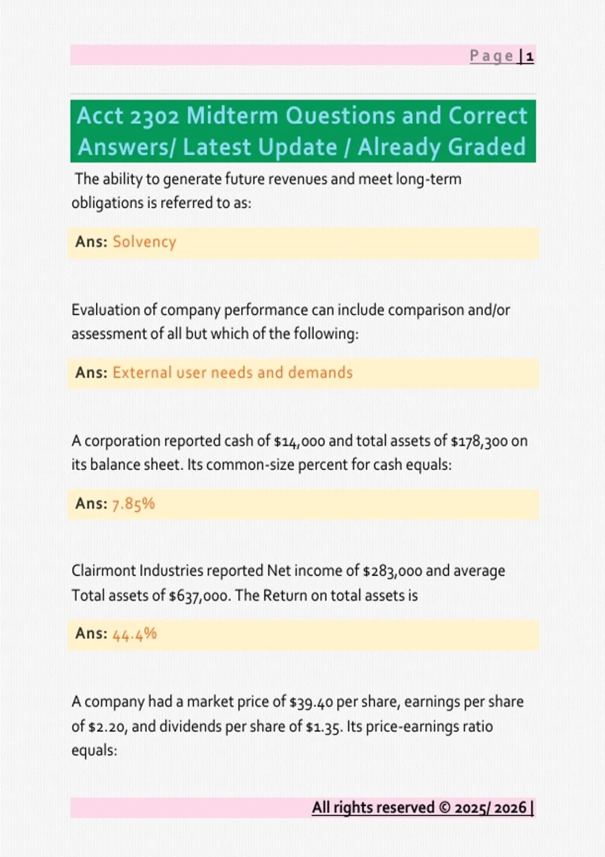 Acct 2302 Midterm Questions and Correct