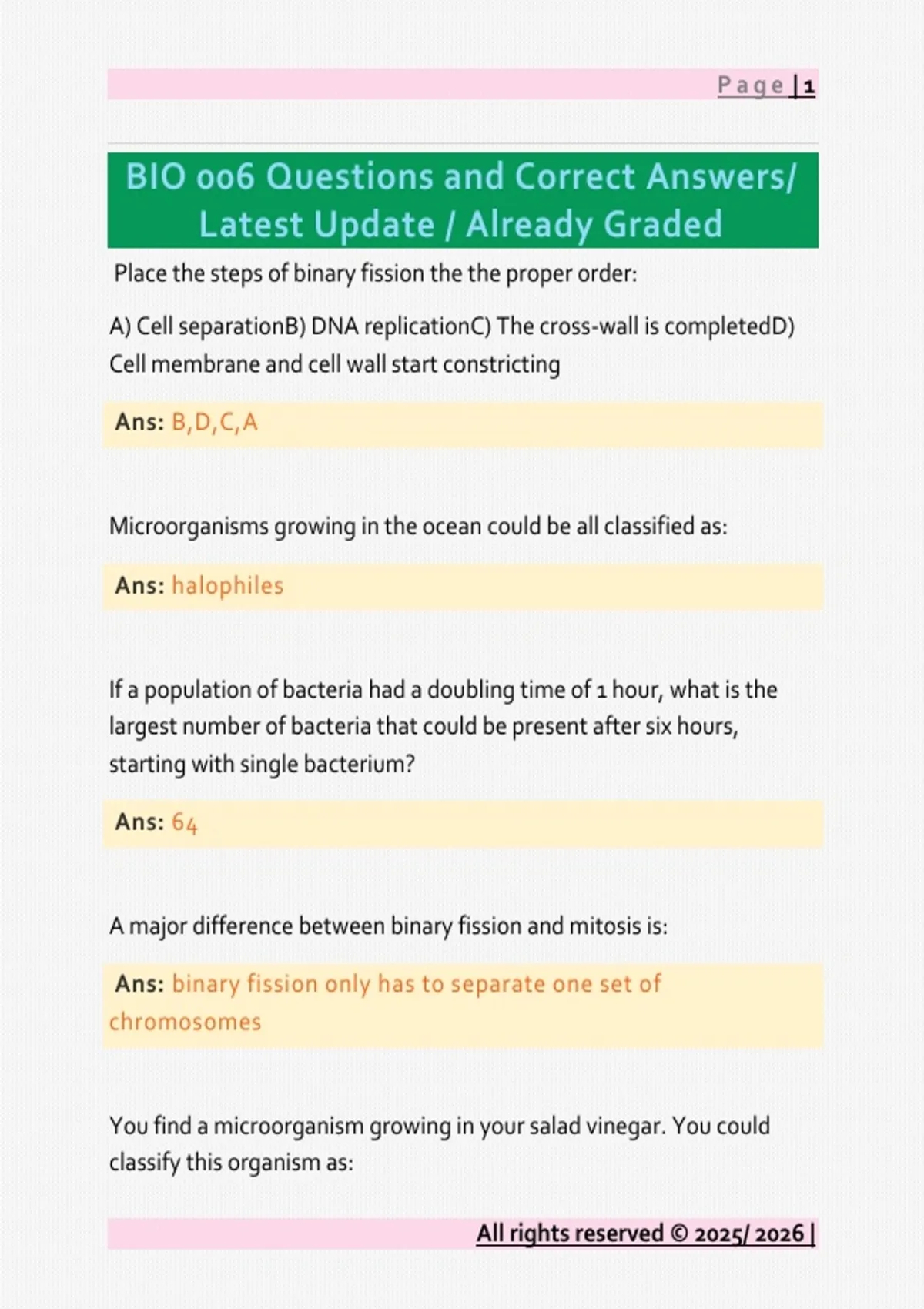 BIO 006 Questions and Correct Answers/