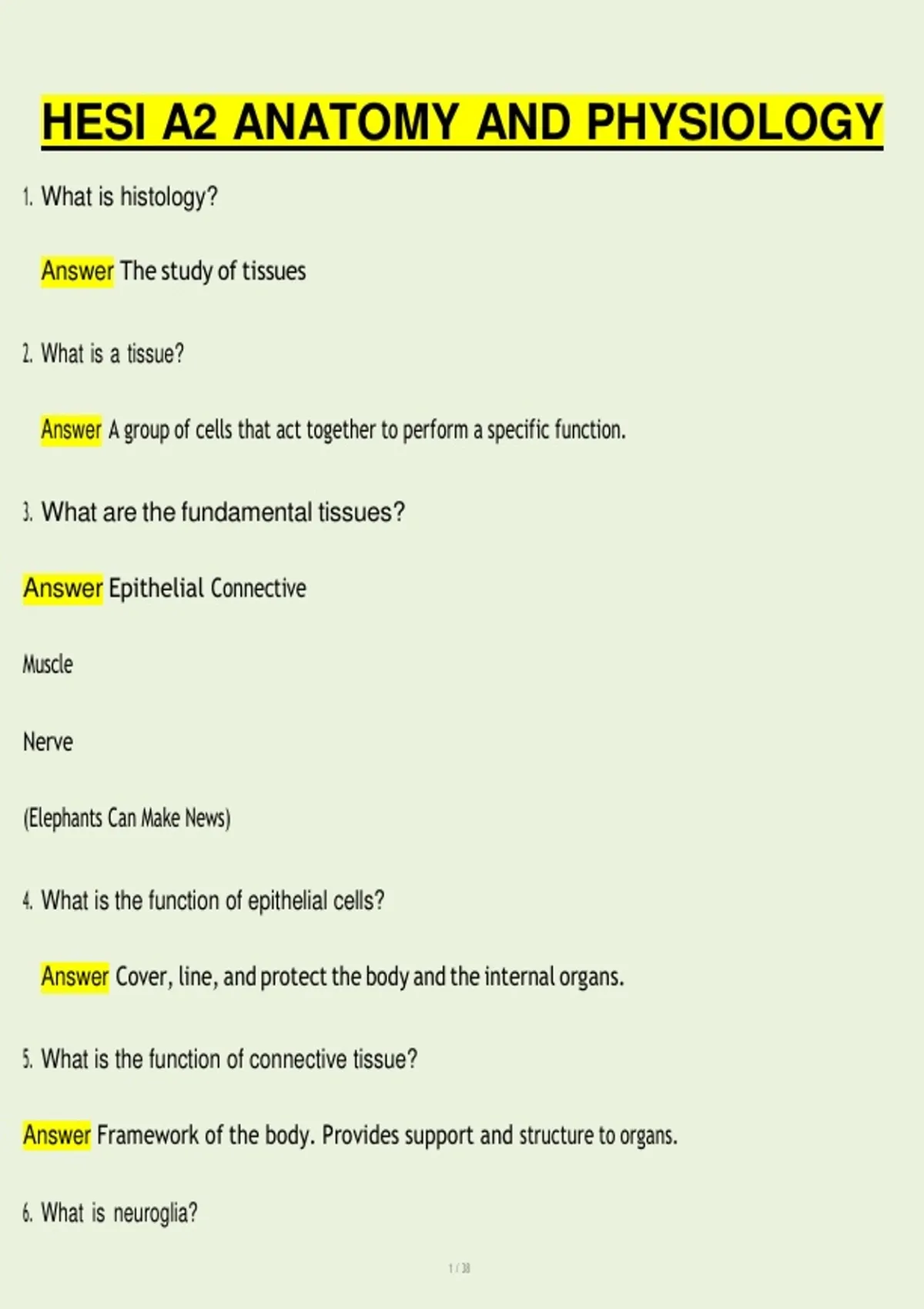 HESI A2 ANATOMY AND PHYSIOLOGY