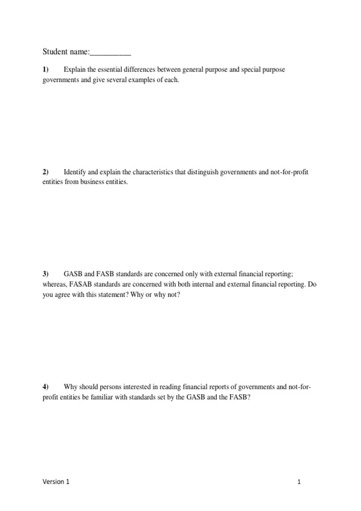 2) Identify and explain the characteristics that distinguish governments and not-for-profit