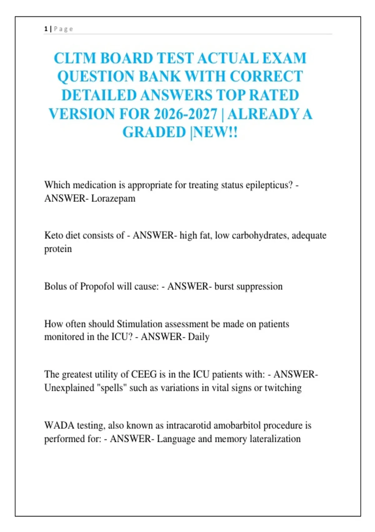 CLTM BOARD TEST ACTUAL EXAM QUESTION BANK WITH CORRECT DETAILED ANSWERS TOP RATED VERSION FOR | ALREADY A GRADED |NEW!!