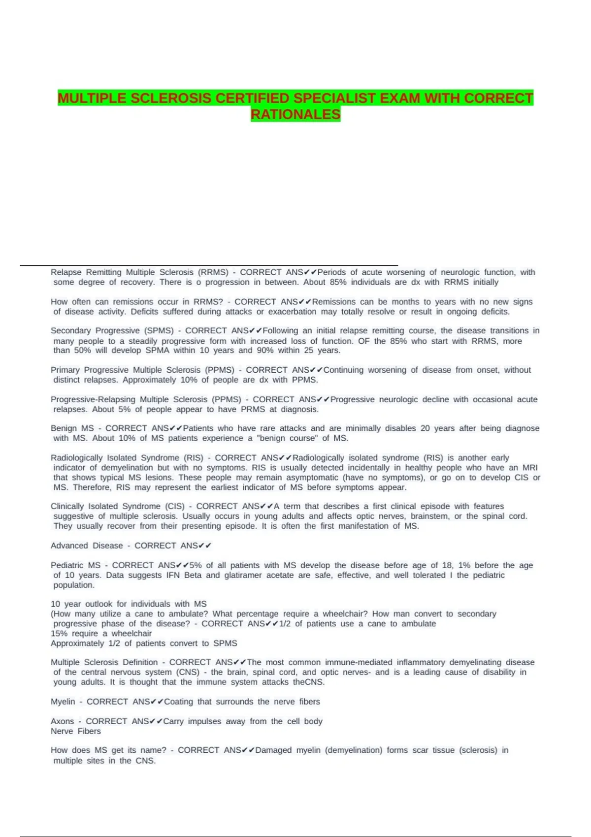MULTIPLE SCLEROSIS CERTIFIED SPECIALIST EXAM WITH CORRECT RATIONALES