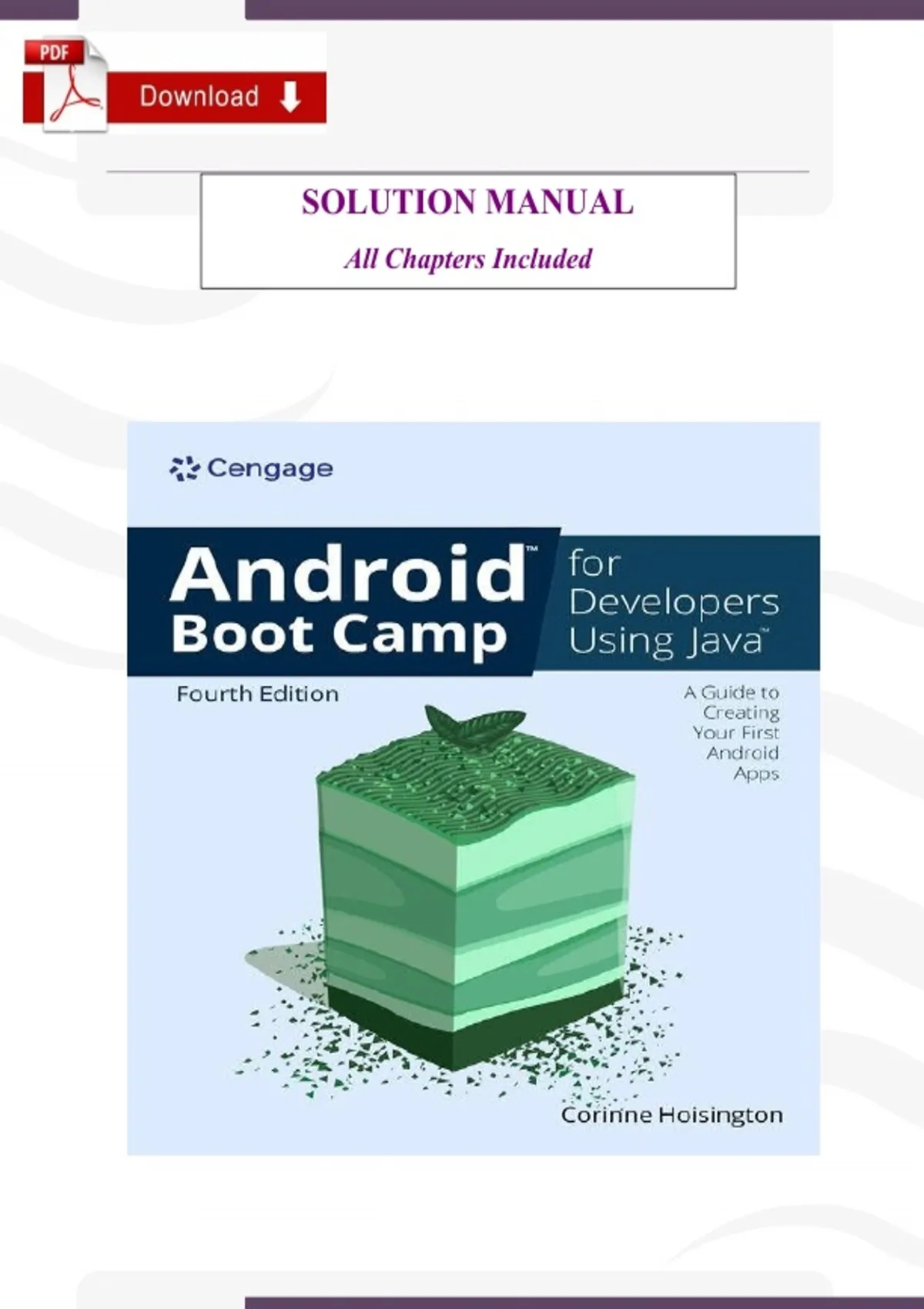 The Android Boot Camp for Developers Using Java®: A Guide to Creating Your First Android Apps (4th Edition) – Verified Solutions Manual is a comprehensive academic support resource designed for computer science, software engineering, and mobile application development students, educators, and professionals. This solutions manual is carefully aligned with the 4th Edition of Android Boot Camp for Developers Using Java®, ensuring accuracy, relevance, and reliability. It provides complete, step‑by‑step solutions to end‑of‑chapter problems, coding exercises, and case studies, making it an essential companion for mastering Android development concepts. Android development is one of the most in‑demand skills in today’s technology landscape, requiring mastery of both programming fundamentals and applied mobile app design. Students must understand topics such as Java programming basics, Android Studio environment setup, user interface design, activities and intents, layouts, widgets, event handling, data storage, SQLite databases, multimedia integration, and publishing apps to the Google Play Store. Without structured guidance, it can be overwhelming to apply these principles to complex coding scenarios. This verified solutions manual simplifies the learning process by offering clear, detailed answers that reinforce programming logic, debugging strategies, and practical application. Each solution is designed to reflect the textbook’s content, helping learners build confidence and competence in Android app development. Key Features Complete coverage of all chapters in the 4th Edition textbook Step‑by‑step solutions to coding exercises, projects, and review questions Detailed explanations that clarify complex programming concepts Exam‑ready format that prepares students for computer science and mobile app development assessments Time‑saving structure for efficient study and targeted review Benefits for Students This solutions manual is an invaluable tool for computer science and software engineering students who want to excel in their coursework and exams. It helps learners: Strengthen understanding of Java programming and Android development fundamentals Practice applying coding principles to real‑world mobile app projects Build confidence in solving case‑based and analytical problems Save study time by focusing on essential, exam‑relevant content Improve performance in coursework, midterms, finals, and professional certification exams Benefits for Educators Faculty in computer science and IT programs can use this resource to: Create quizzes, assignments, and exams quickly Provide structured feedback with accurate solutions Assess student comprehension effectively Ensure alignment with the Android Boot Camp for Developers Using Java®, 4th Edition textbook Who Should Use This Resource Computer science and software engineering students preparing for exams and coursework Educators designing course assessments and evaluations Mobile app developers refreshing knowledge of Android fundamentals Anyone seeking a reliable, solutions‑focused study tool Why Choose This Verified Solutions Manual Trusted by technology programs worldwide, this verified solutions manual is carefully crafted to match the textbook content, ensuring accuracy and relevance. By working through these solutions, learners not only memorize theoretical concepts but also develop the ability to apply them in real‑world mobile app development contexts. With this resource, you can reduce stress, save time, and achieve better results in your Android programming exams.