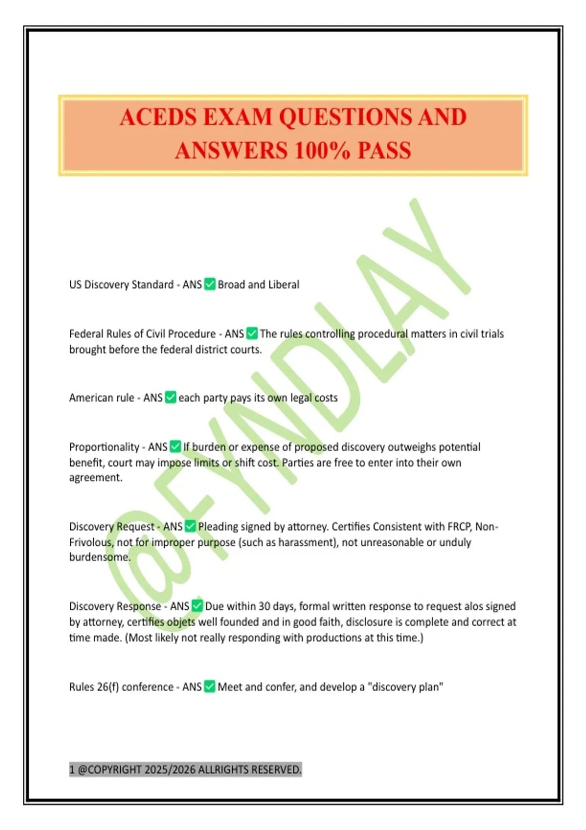 ACEDS EXAM QUESTIONS AND ANSWERS 100% PASS