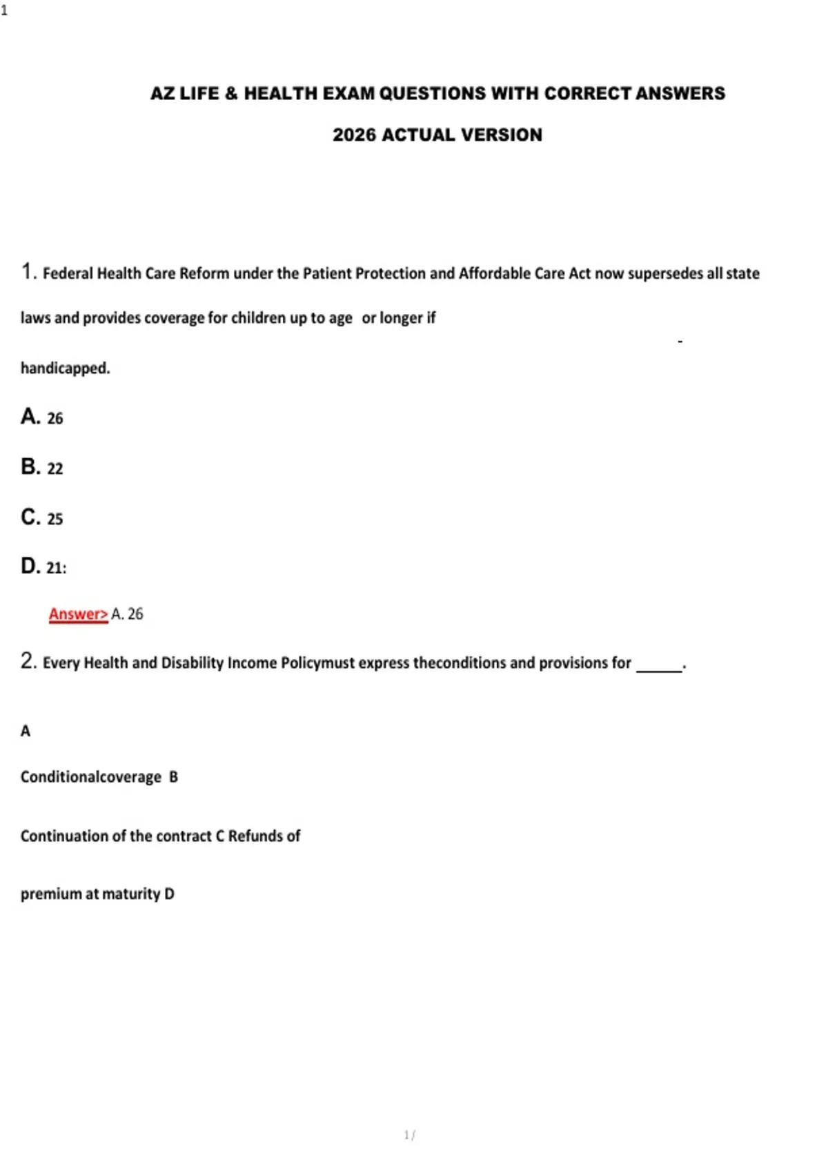 AZ LIFE & HEALTH EXAM QUESTIONS WITH CORRECT ANSWERS