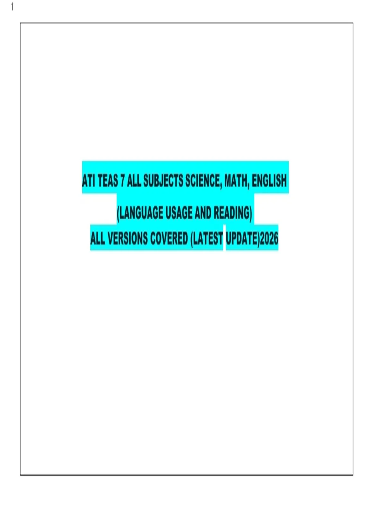 ATI TEAS 7 ALL SUBJECTS SCIENCE, MATH, ENGLISH
