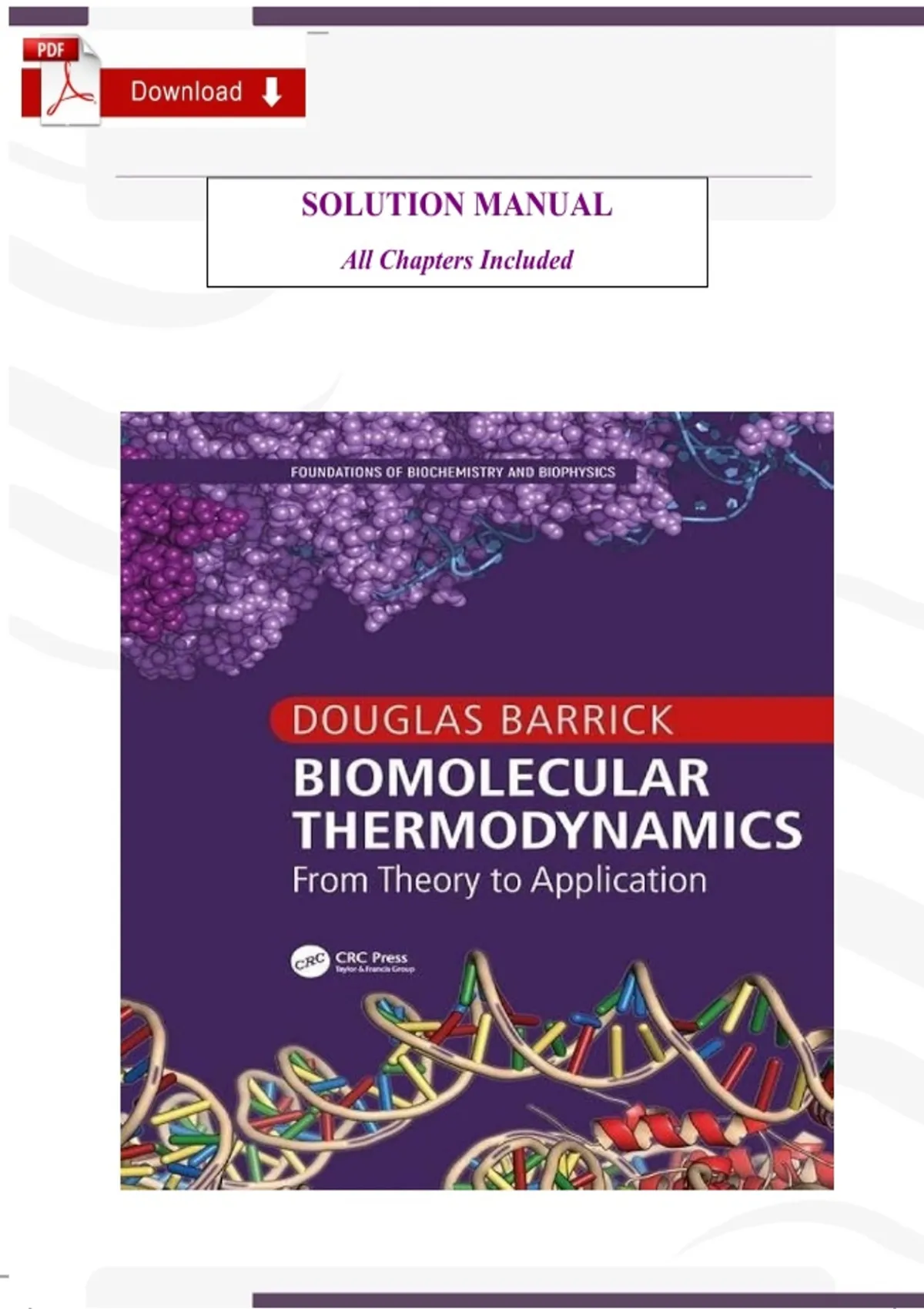 ,Biomolecụlar Thermodynamics 1st Edition by Barrick All Chapters 1 to 14