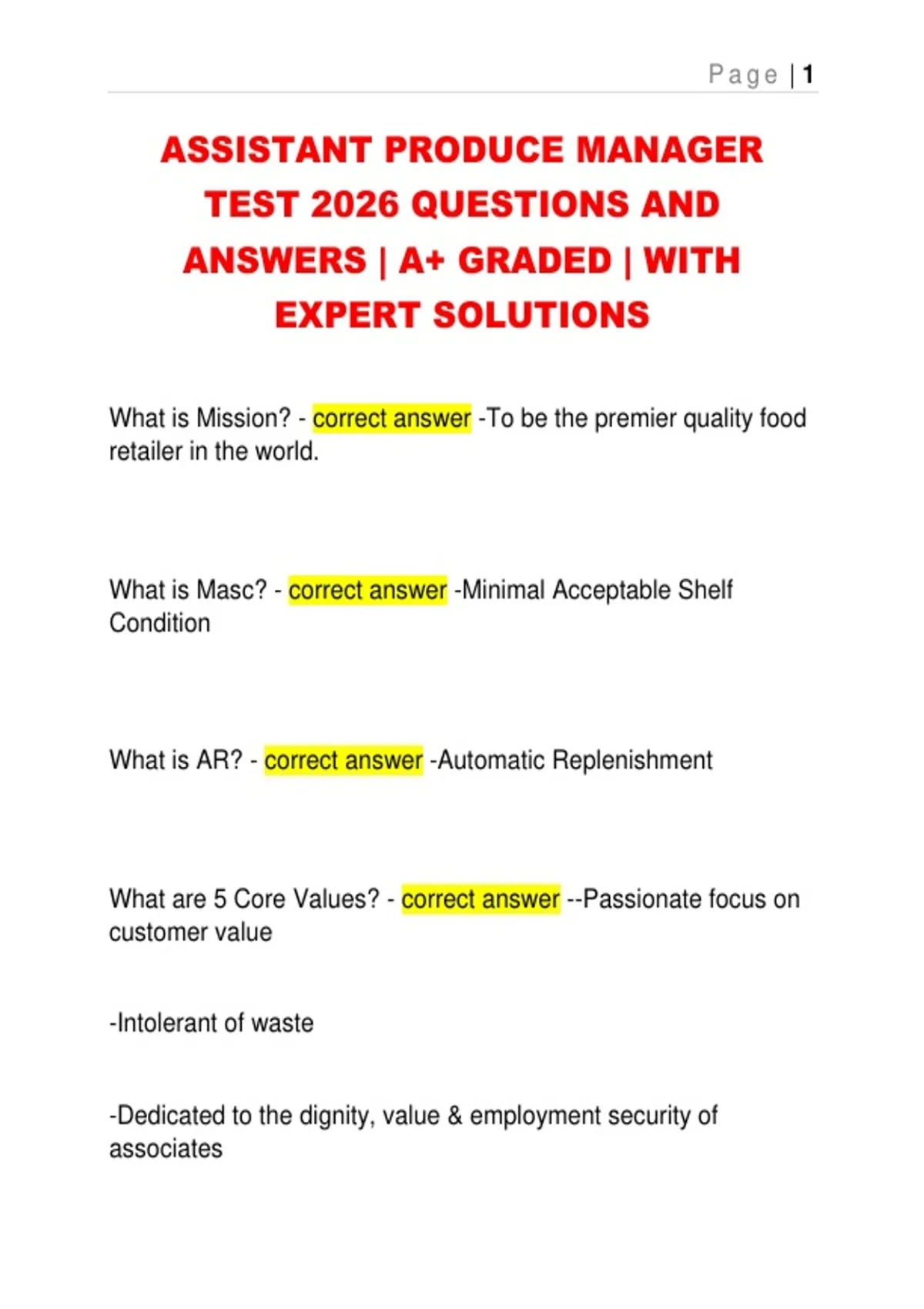 What are 5 Core Values? - correct answer --Passionate focus on