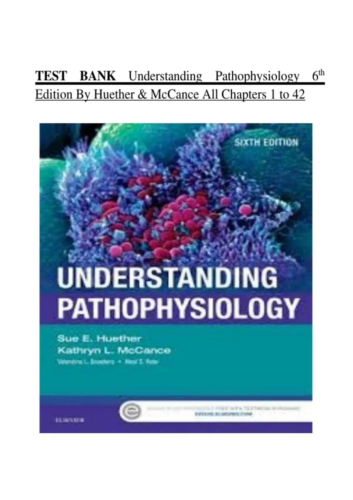 Master pathophysiology concepts with this comprehensive Test Bank for Understanding Pathophysiology, 6th Edition, authored by Sue E. Huether, MS, PhD & Kathryn L. McCance, MS, PhD. This test bank provides chapter-by-chapter exam-style questions covering cellular biology, immune and inflammatory responses, genetics, organ system pathophysiology, disease processes, and clinical applications. Ideal for nursing, medical, and allied health students preparing for exams, clinical reasoning, and NCLEX-style review. Included: Multiple-choice and scenario-based questions by chapter Complete answer key with detailed rationales Updated for 2026 exam relevance Perfect for quizzes, midterms, finals, and comprehensive review This Graded A+ Test Bank is an essential resource for mastering disease mechanisms, clinical reasoning, and pathophysiology for academic and clinical success.