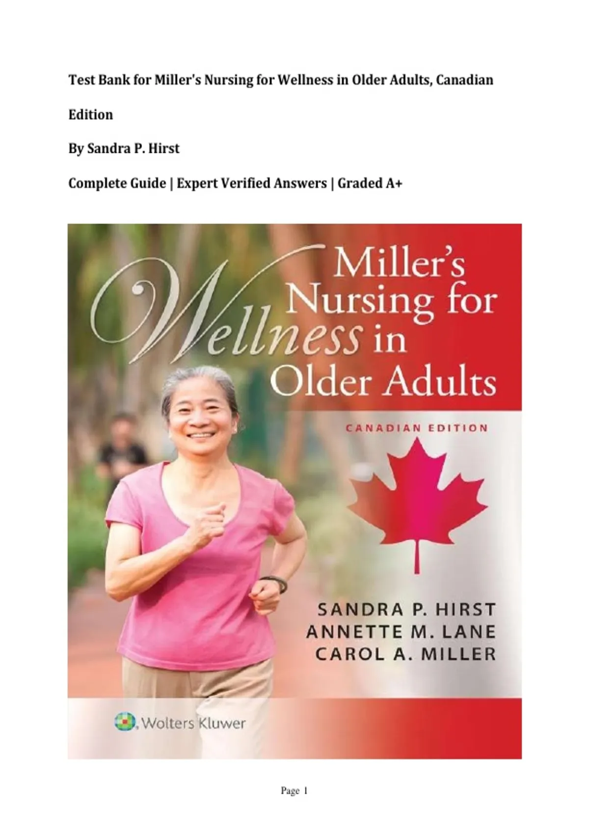 Test Bank for Miller's Nursing for Wellness in Older Adults, Canadian Edition By Sandra P. Hirst | Complete Guide | Expert Verified Answers | Graded A+