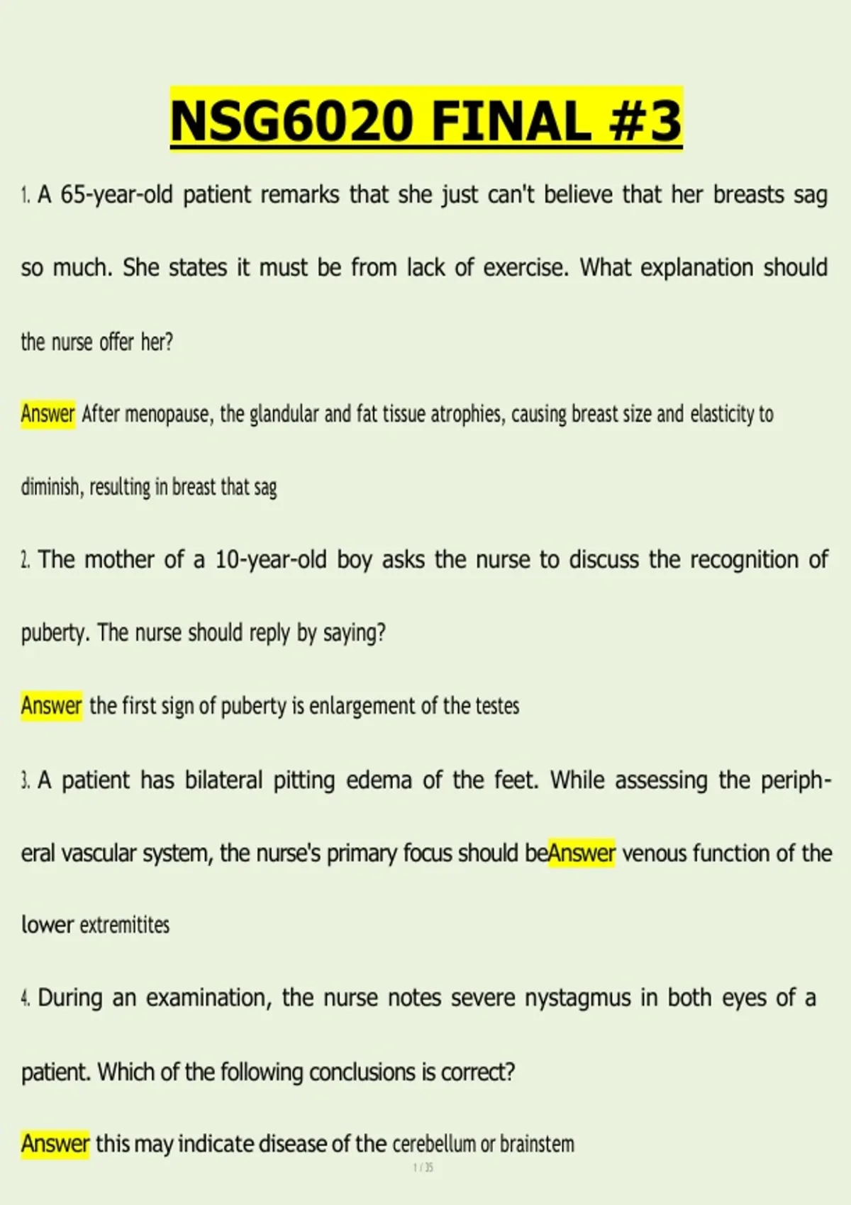 1. A 65-year-old patient remarks that she just can't believe that her breasts sag