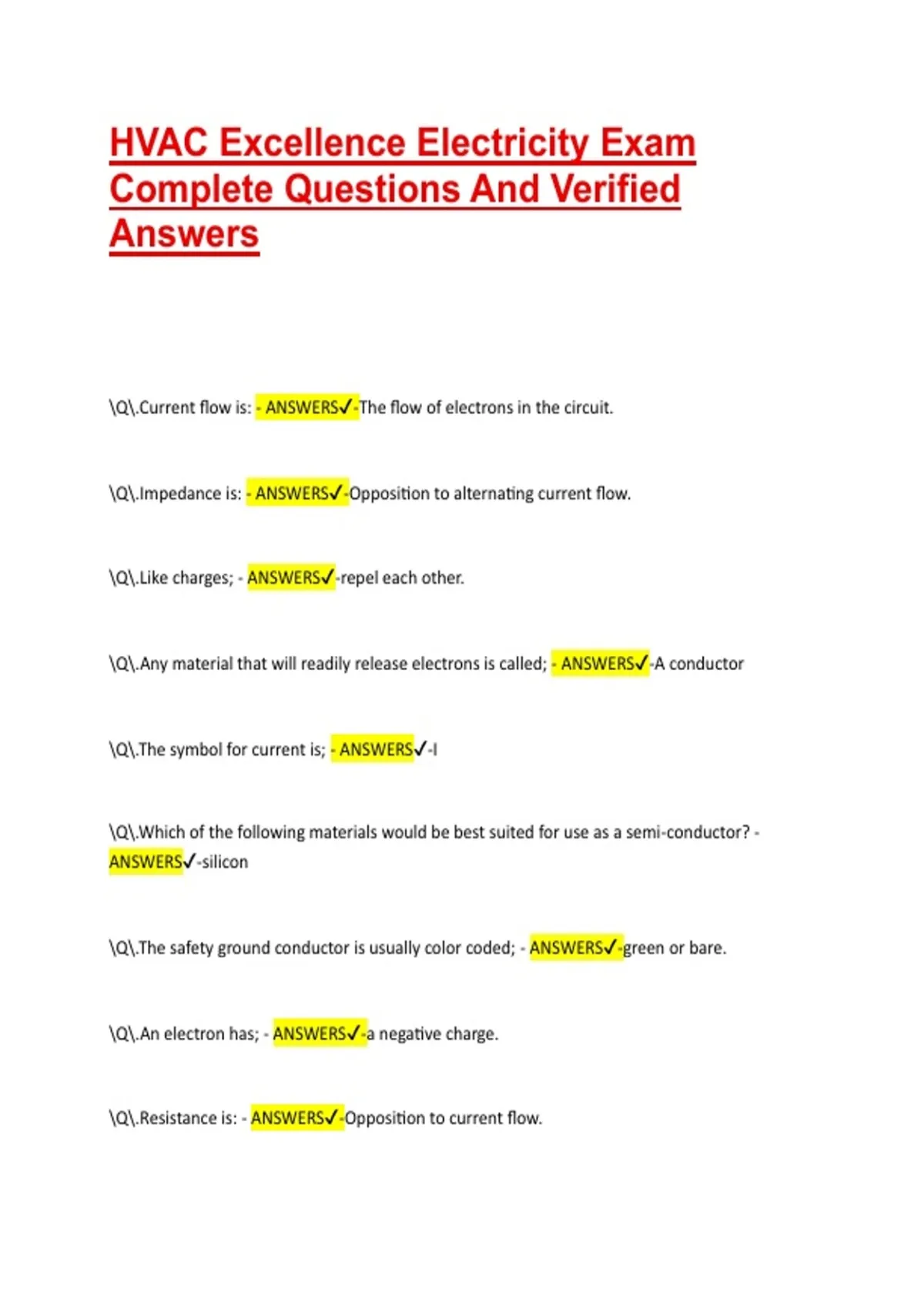 \Q\.Resistance is: - ANSWERS✔-Opposition to current flow.