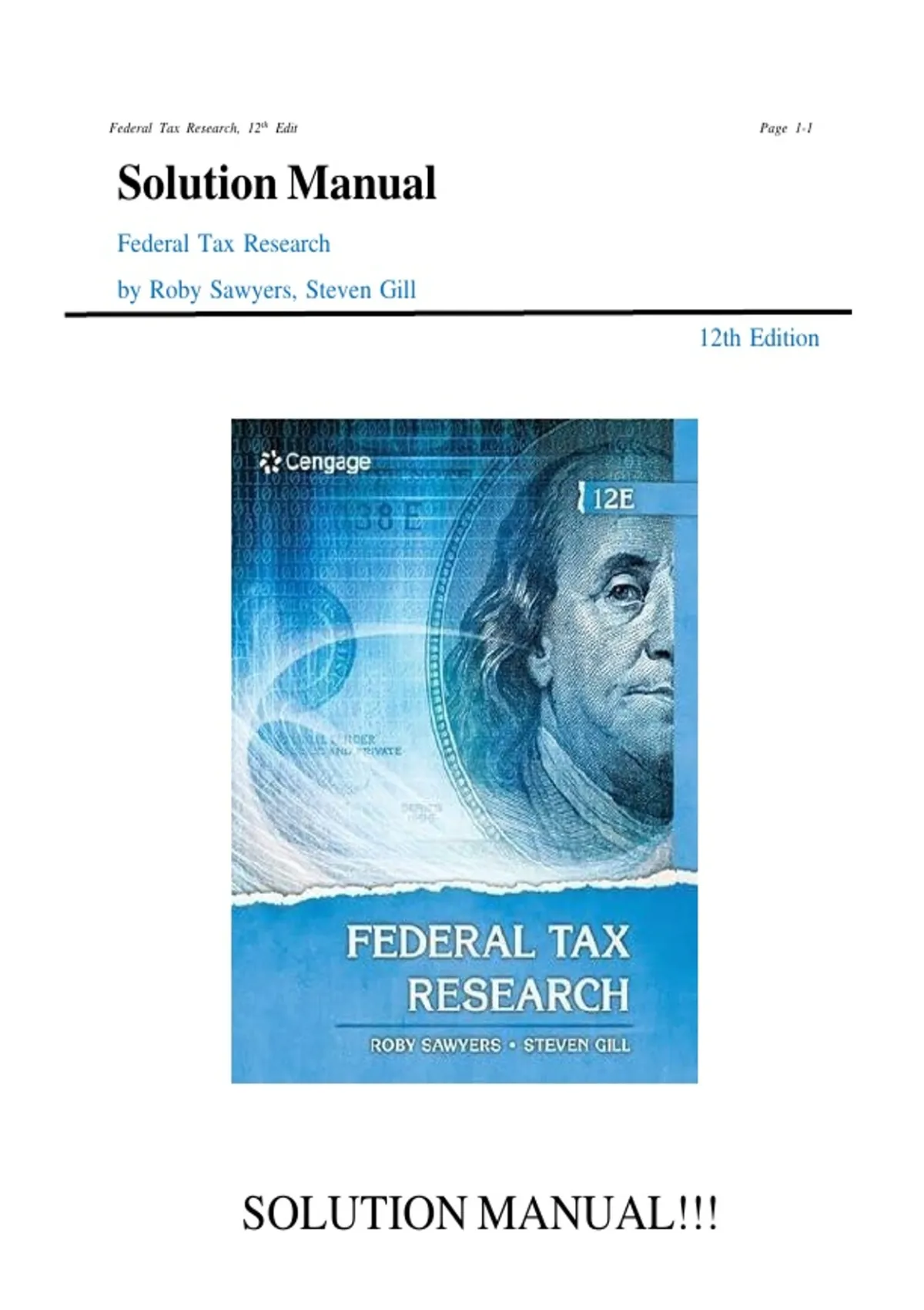 Solution Manual for Federal Tax Research 12th Edition Sawyers & Gill – Complete Answer Guide (Chapters 1-13).