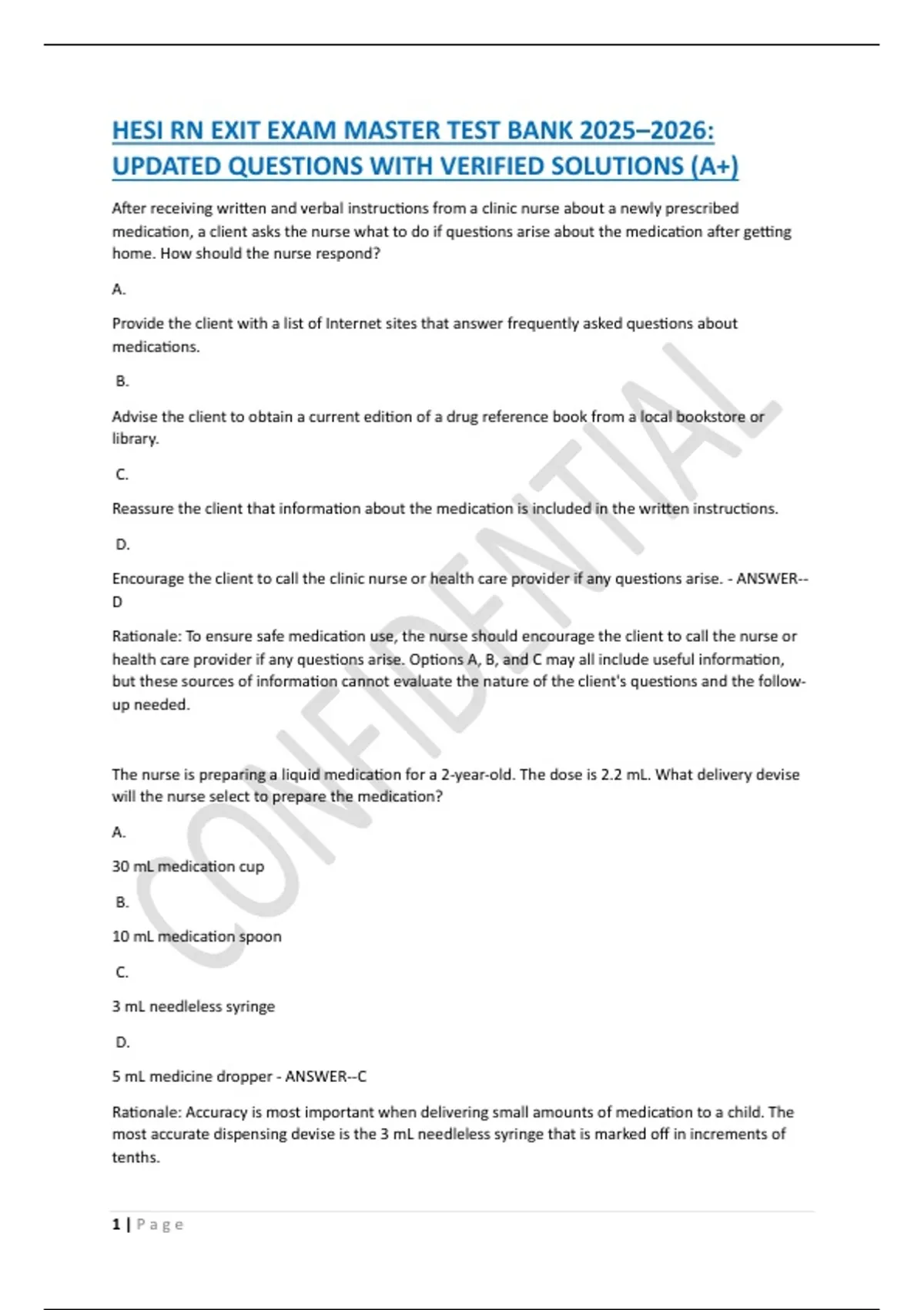 Rationale: Accuracy is most important when delivering small amounts of medication to a child. The