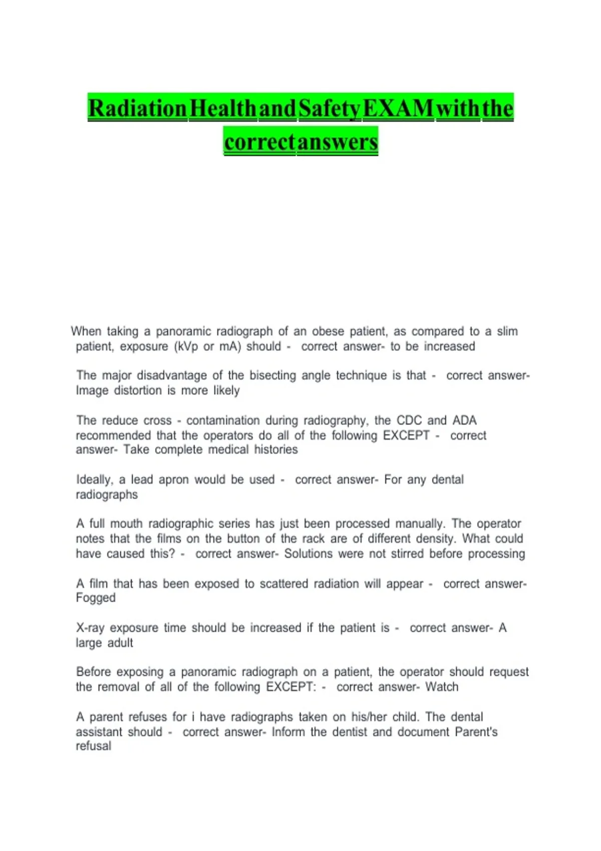 Radiation Health and Safety EXAM with the v v v v v v