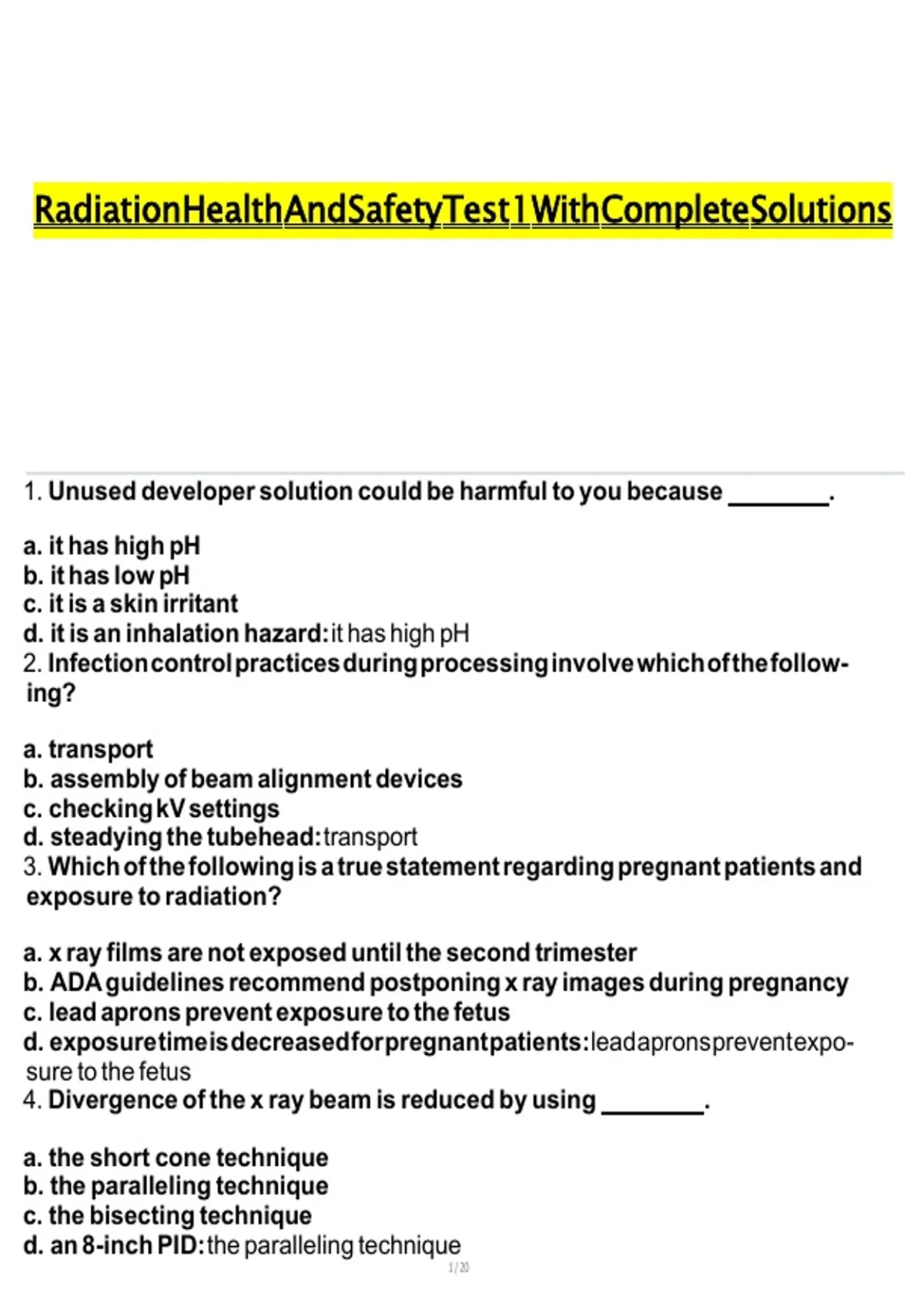 RADIATION HEALTH AND SAFETY TEST 1 WITH COMPLETE SOLUTIONS