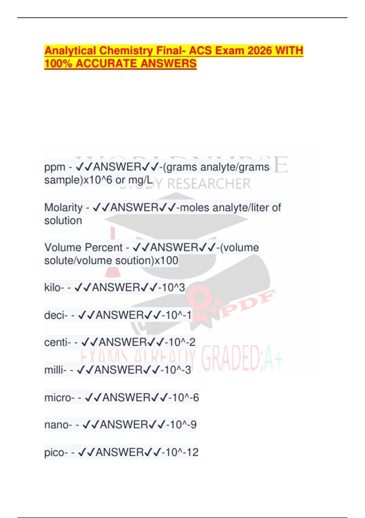 Analytical Chemistry Final- ACS Exam 2026 WITH