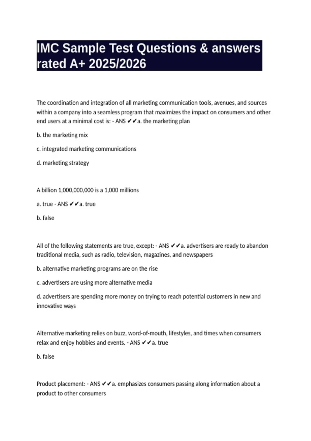 a. true - ANS ✔✔a. true