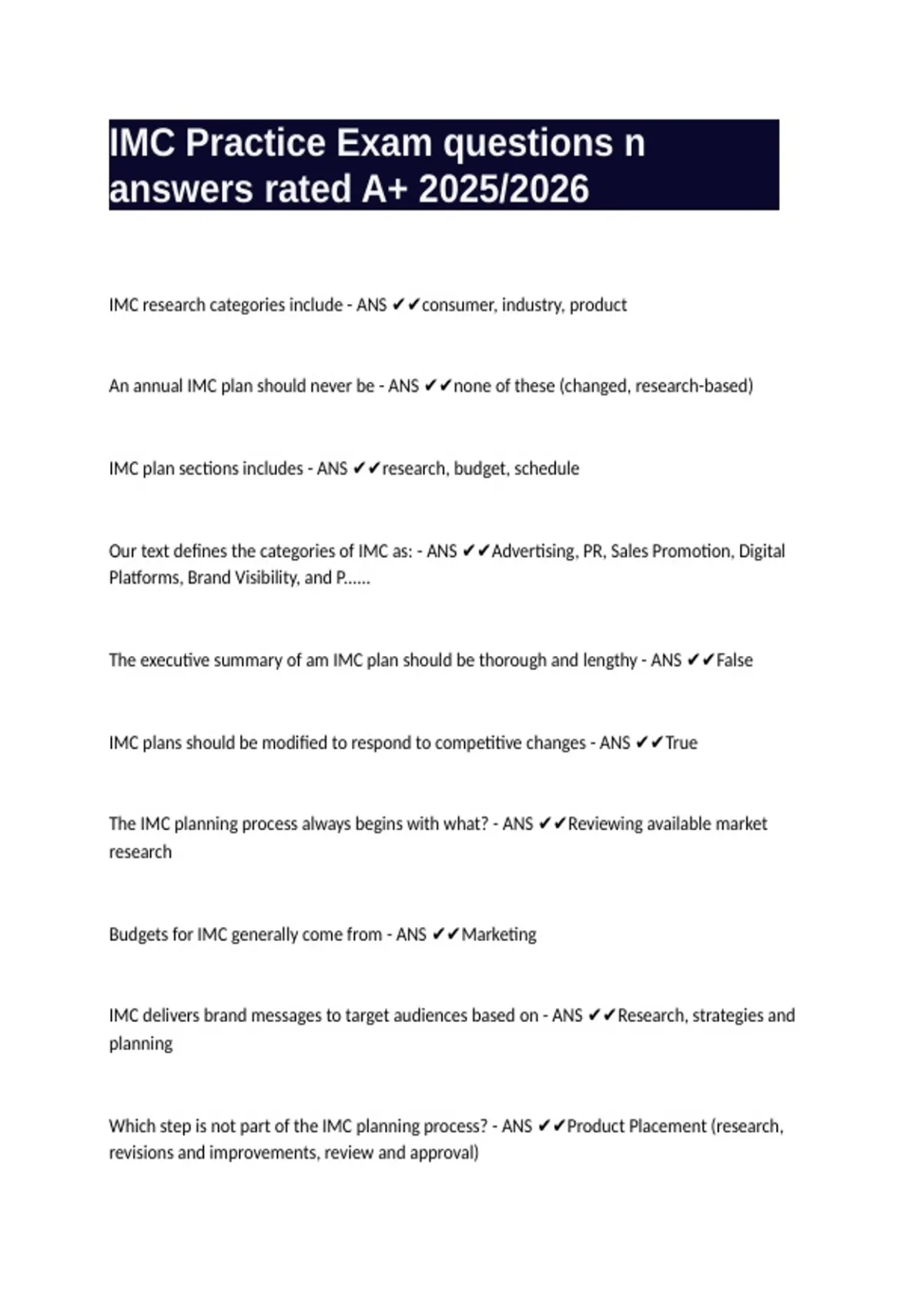 An annual IMC plan should never be - ANS ✔✔none of these (changed, research-based)