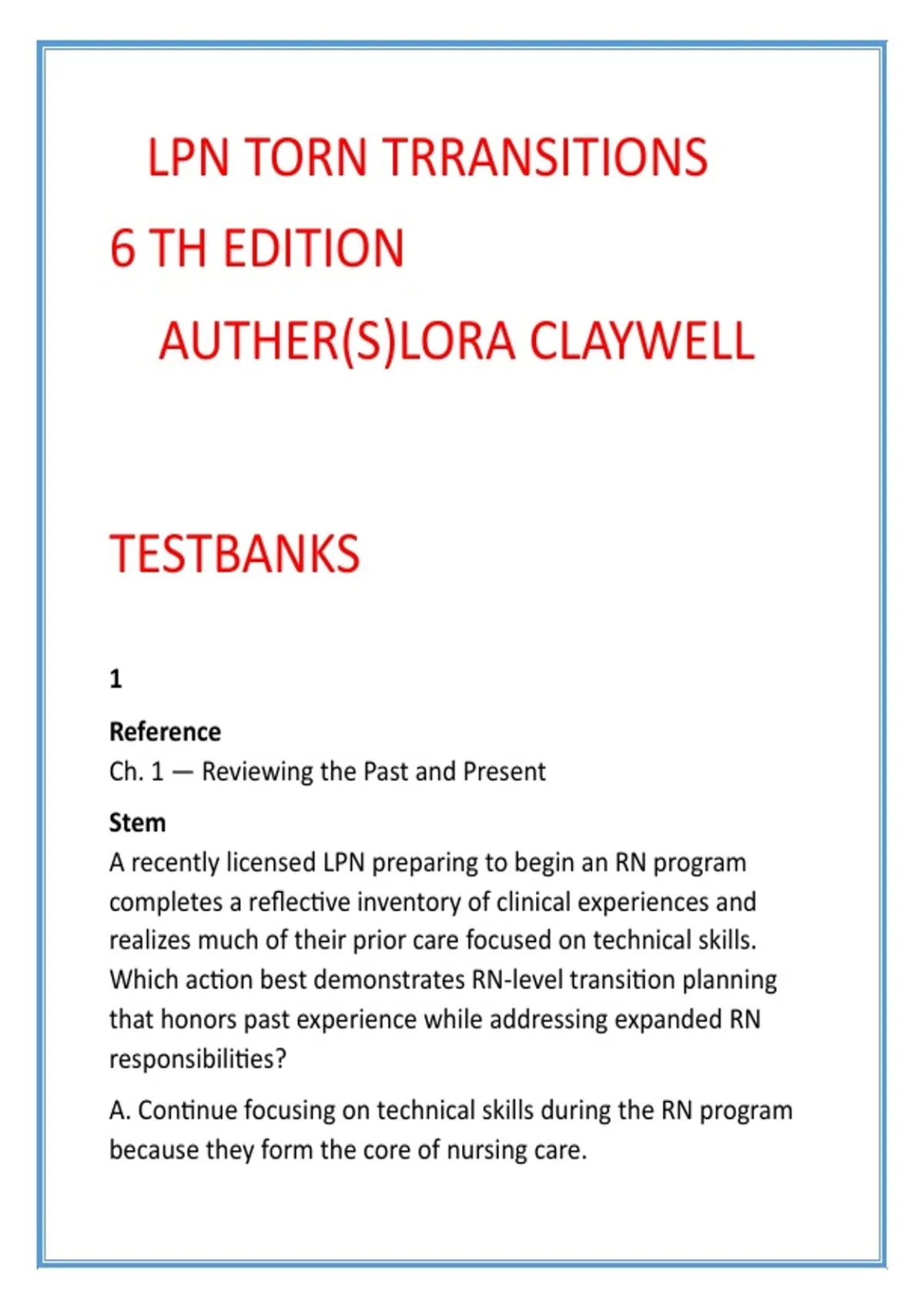 Claywell, L. (2025). LPN to RN Transitions (6th ed.). Ch. 1.