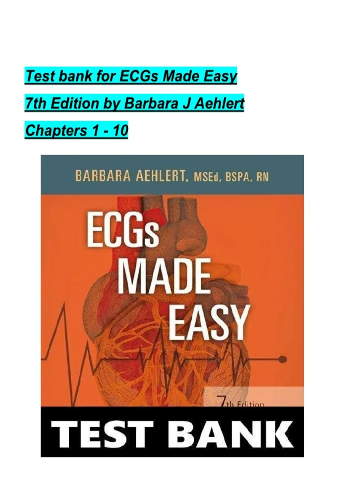 Access the comprehensive test bank and teaching materials for ECGs Made Easy, 7th Edition by Barbara Aehlert. Updated for 2025, this resource supports nursing, EMS, and healthcare educators with ECG interpretation questions, case studies, quizzes, and instructional aids aligned with current cardiac care standards and clinical practice guidelines.