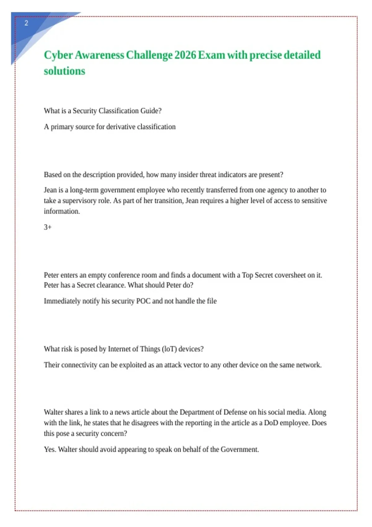 Cyber Awareness Challenge 2026 Exam with precise detailed || || || || || || || ||