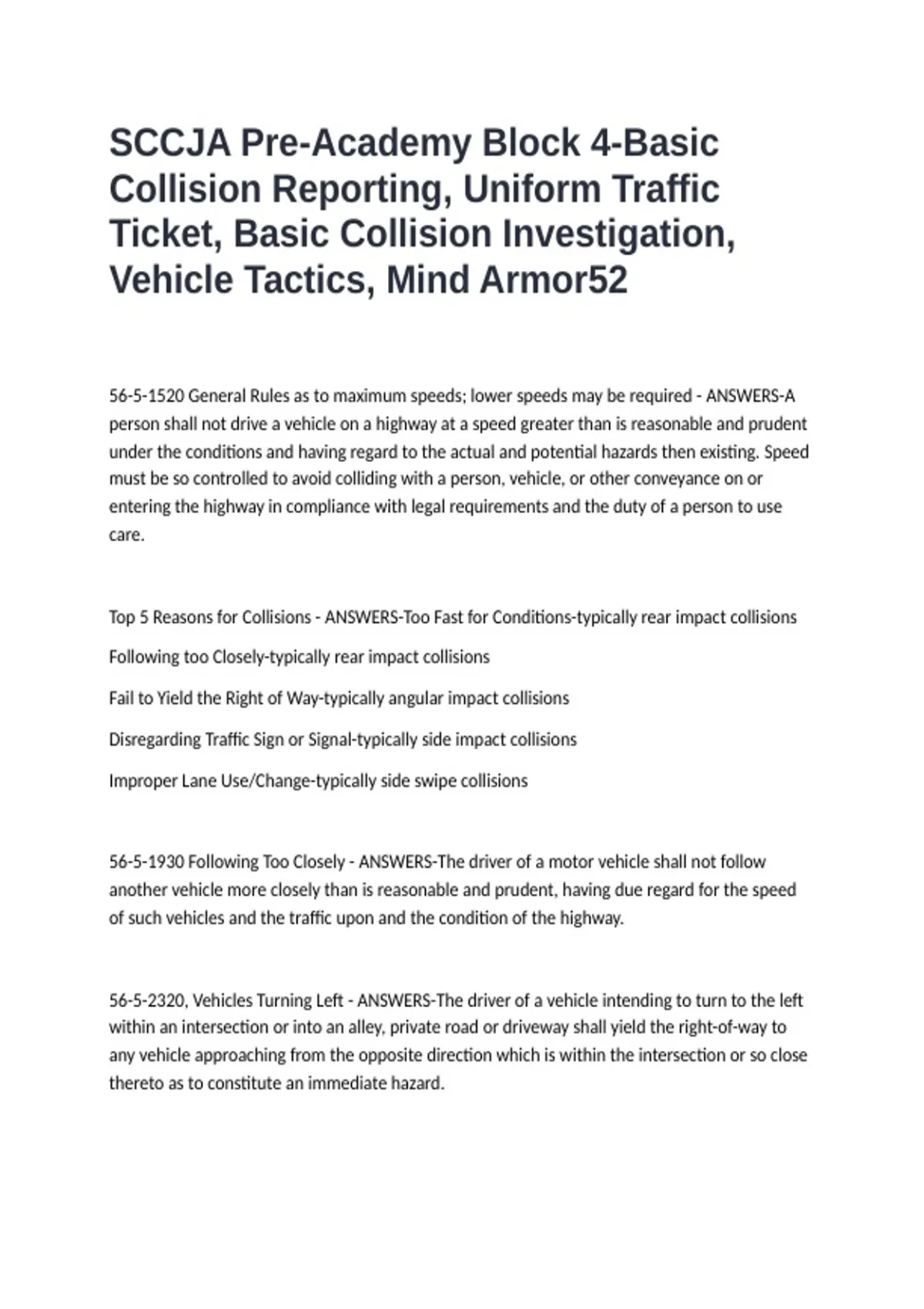 56-5-1520 General Rules as to maximum speeds; lower speeds may be required - ANSWERS-A
