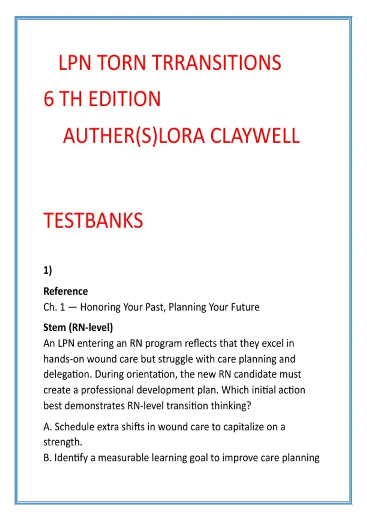 Claywell, L. (2025). LPN to RN Transitions (6th ed.). Ch. 1.