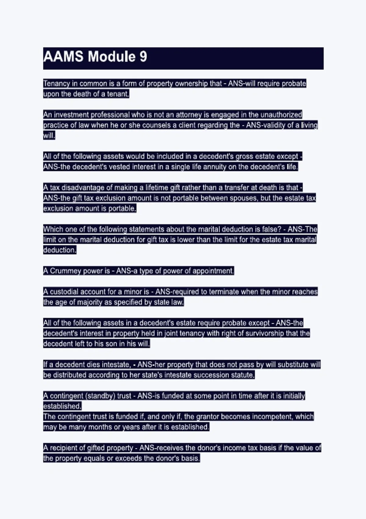 AAMS Module 9 questions and answers