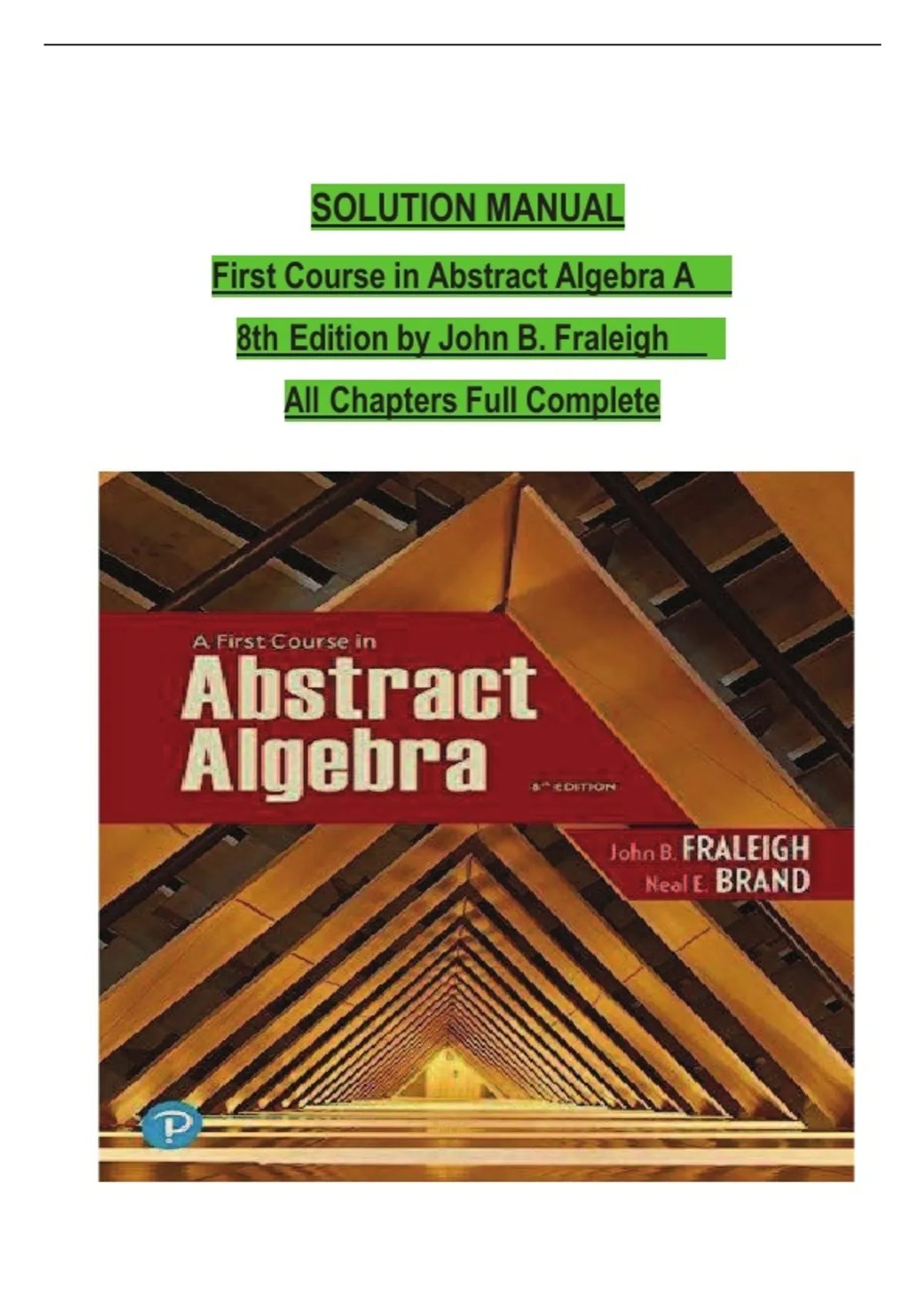 Solution Manual for First Course in Abstract Algebra A, 8th Edition by John B. Fraleigh, Verified Chapters 1 - 56, Complete Newest Version Solution Manual for First Course in Abstract Algebra A, 8th Edition by John B. Fraleigh, Verified Chapters 1 - 56, Complete Newest Version