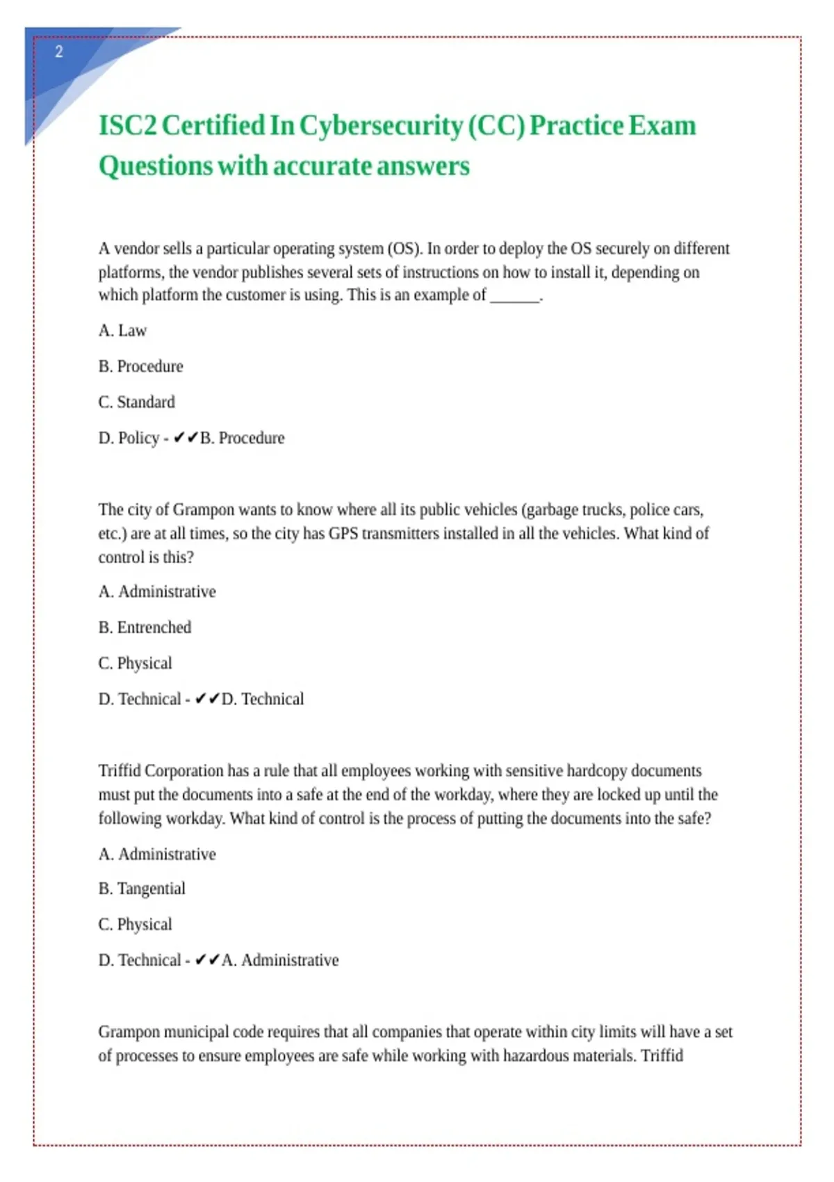D. Administrative - ✔✔C. Physical