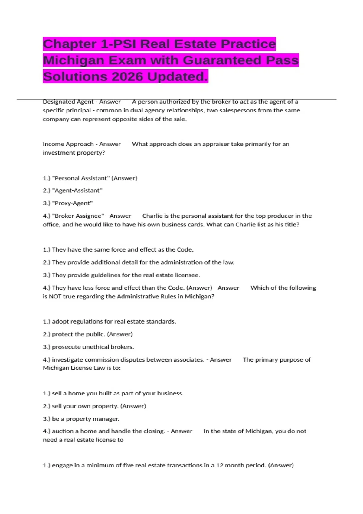 4.) auction a home and handle the closing. - Answer In the state of Michigan, you do not