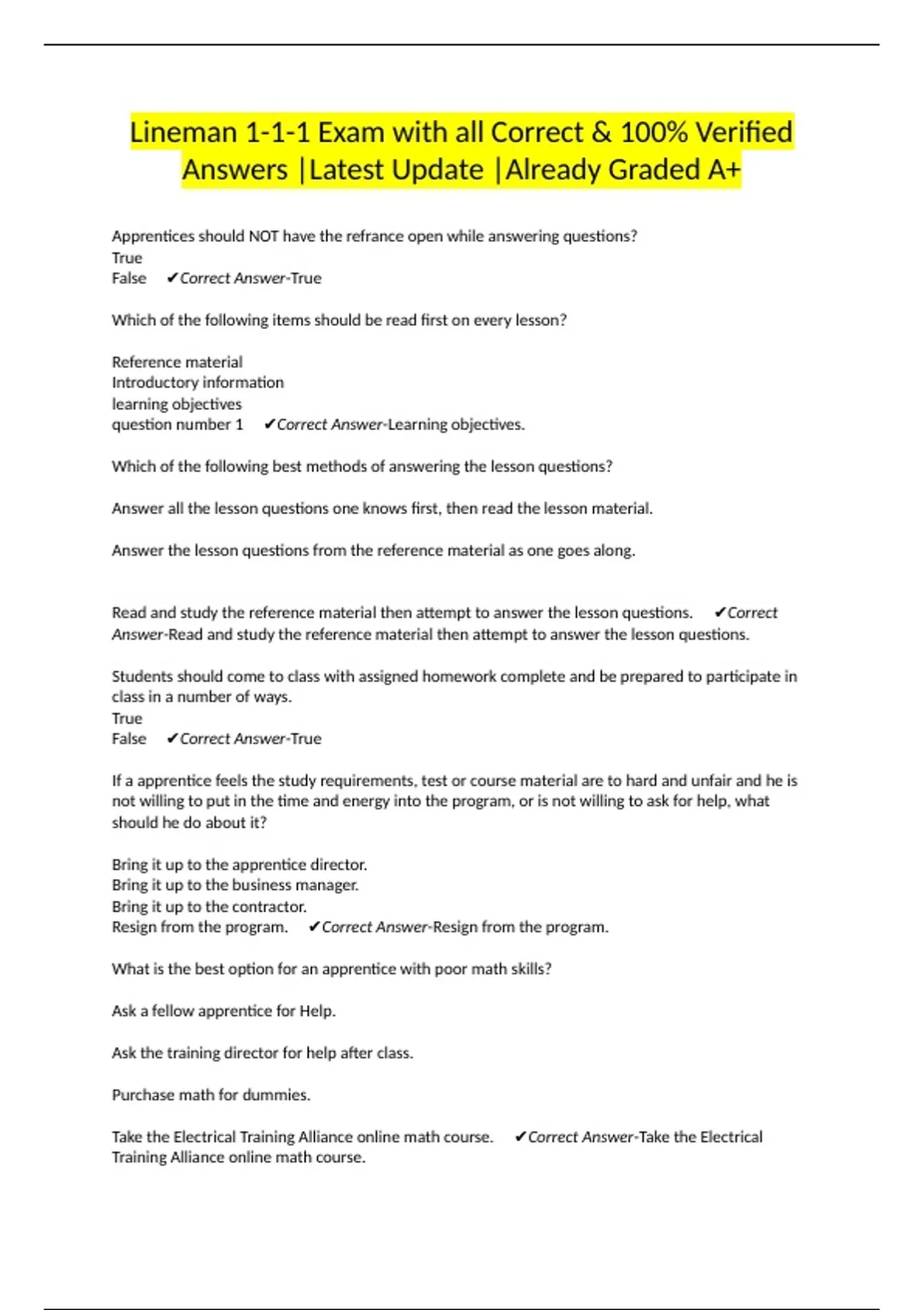 Take the Electrical Training Alliance online math course. ✔Correct Answer-Take the Electrical