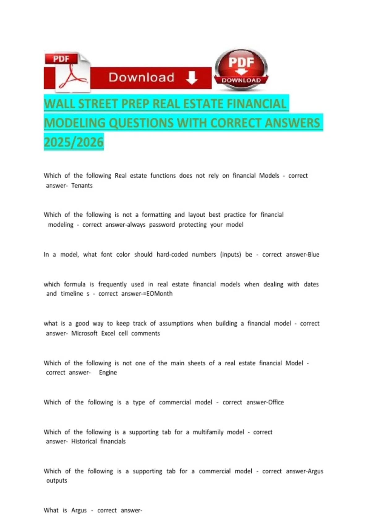 WALL STREET PREP REAL ESTATE FINANCIAL MODELING QUESTIONS WITH CORRECT ANSWER