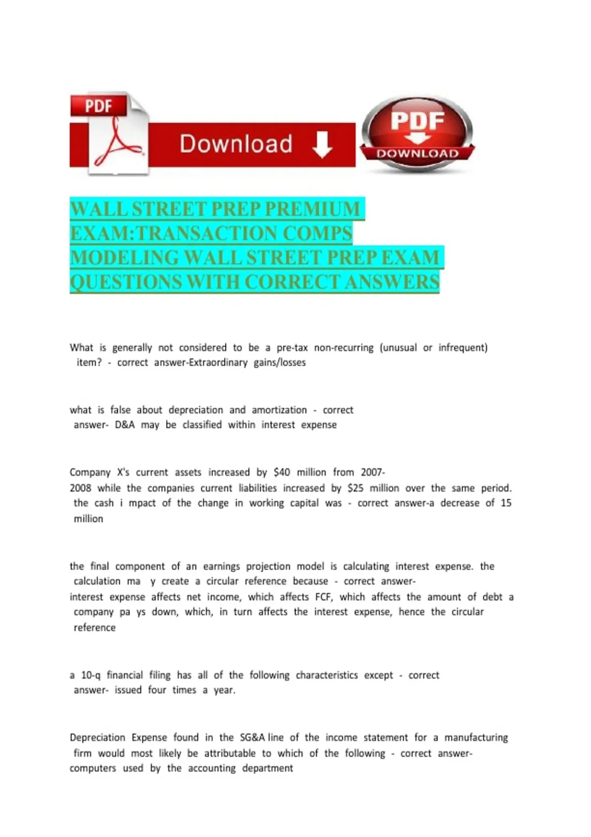 WALL STREET PREP PREMIUM EXAM TRANSACTION COMPS MODELING WALL STREET