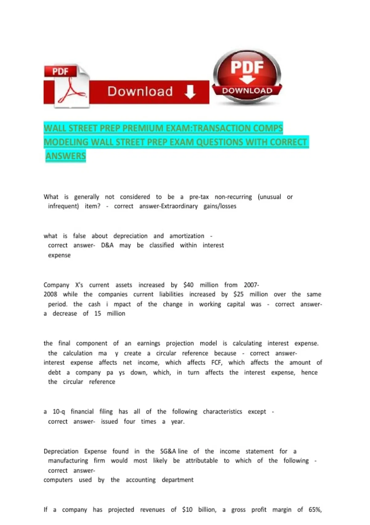 MODELING WALL STREET PREP EXAM QUESTIONS WITH CORRECT