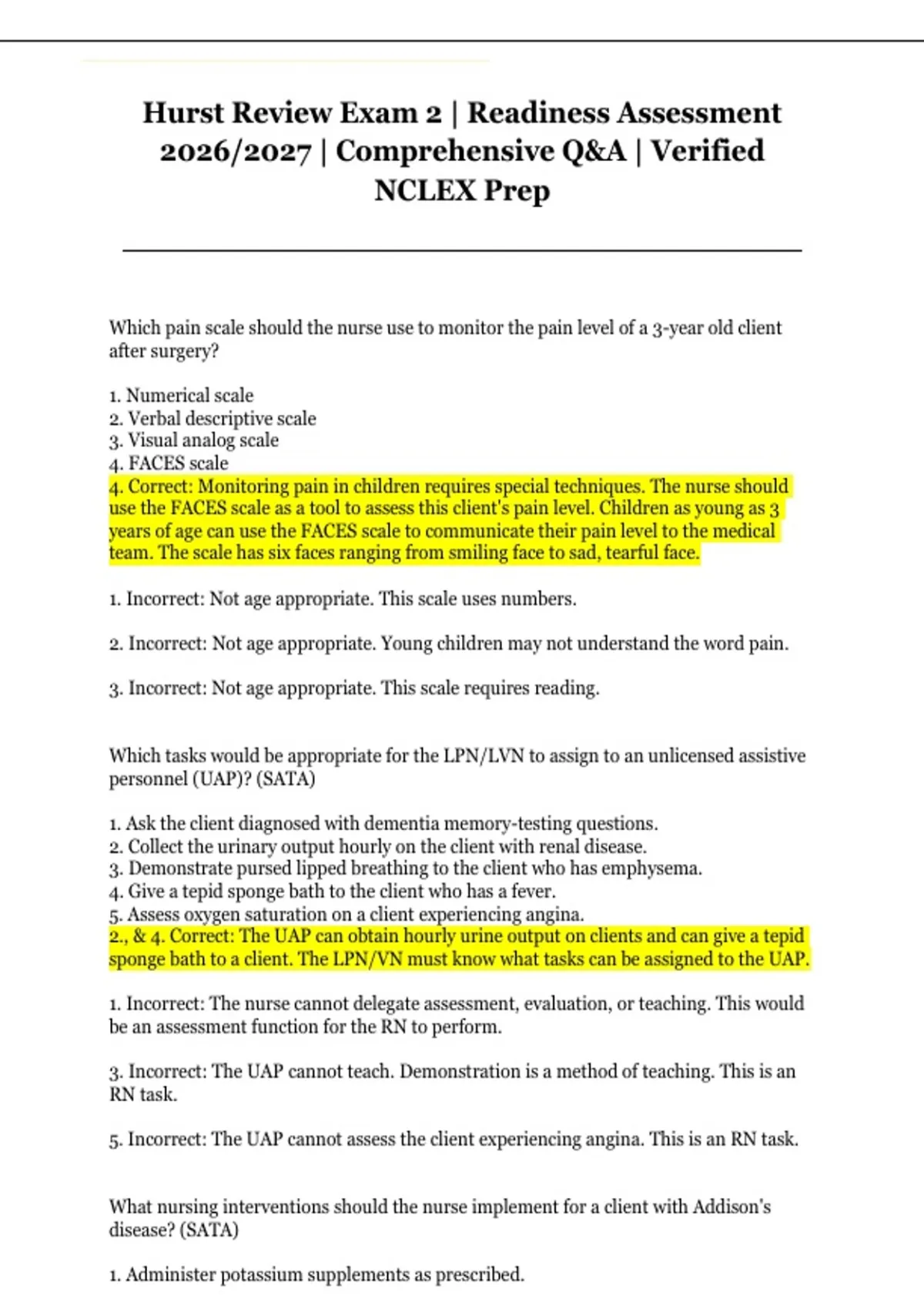 1. Incorrect: Clients with Addison's disease lose sodium and retain potassium, so this