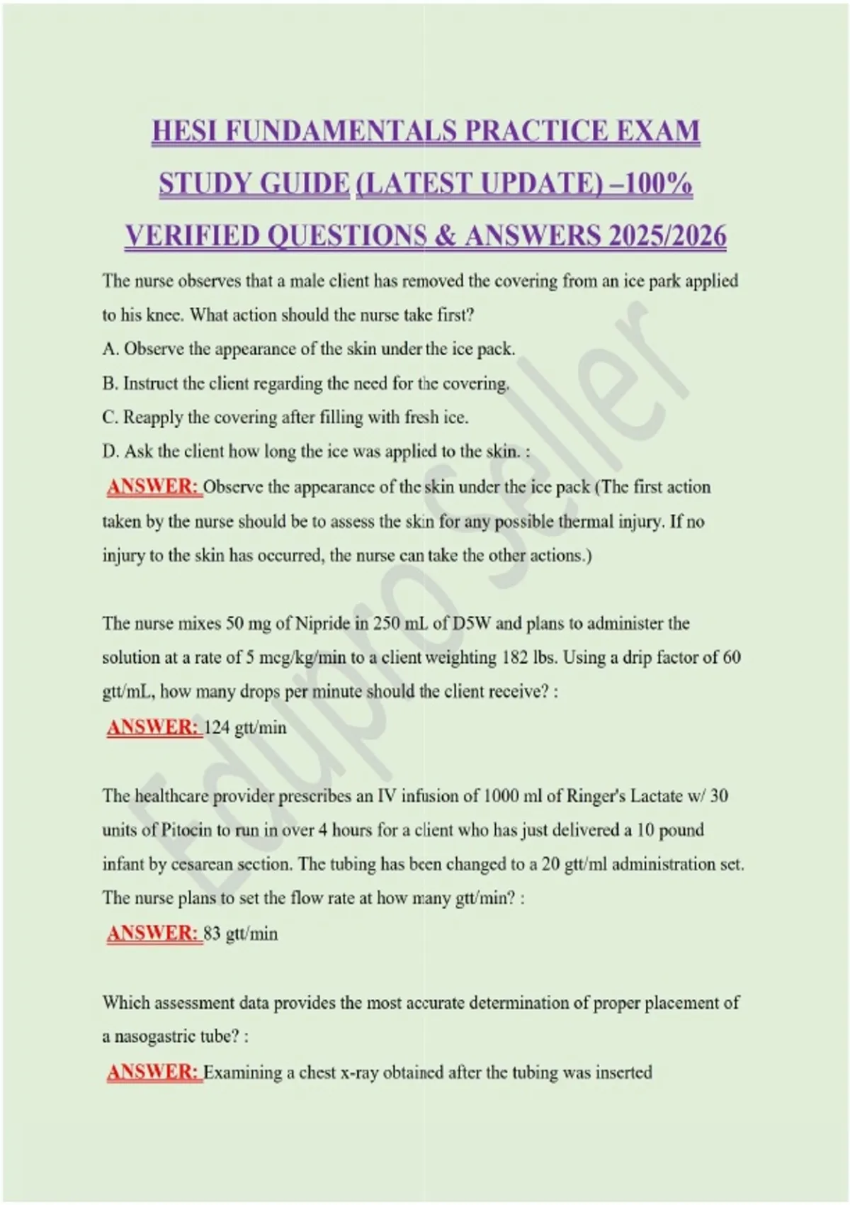 HESI FUNDAMENTALS PRACTICE EXAM STUDY GUIDE QUESTION (LATEST UPDATE) –100% VERIFIED QUESTIONS & ANSWERS 2025/2026