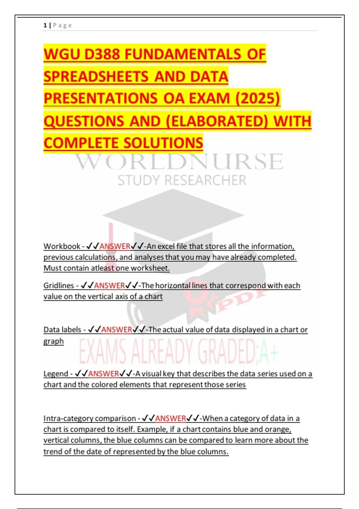 WGU D388 FUNDAMENTALS OF SPREADSHEETS AND DATA PRESENTATIONS OA EXAM (2025) QUESTIONS AND (ELABORATED) WITH COMPLETE SOLUTIONS