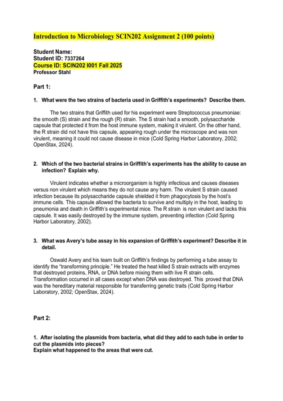 Course ID: SCIN202 I001 Fall 2025