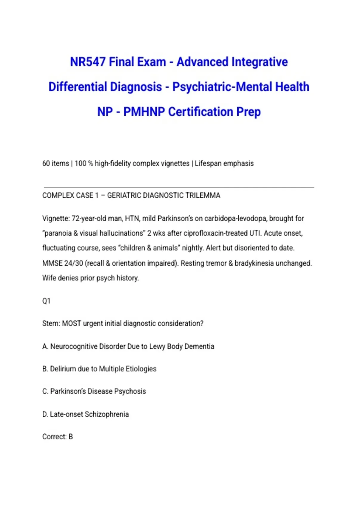symptoms. Lewy Body Dementia (A) is insidious and would not appear abruptly after