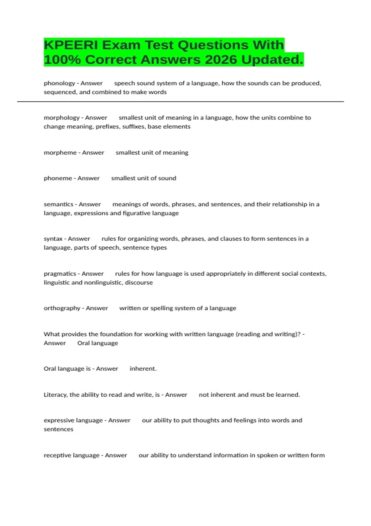 KPEERI Exam Test Questions With 100% Correct Answers 2026 Updated.