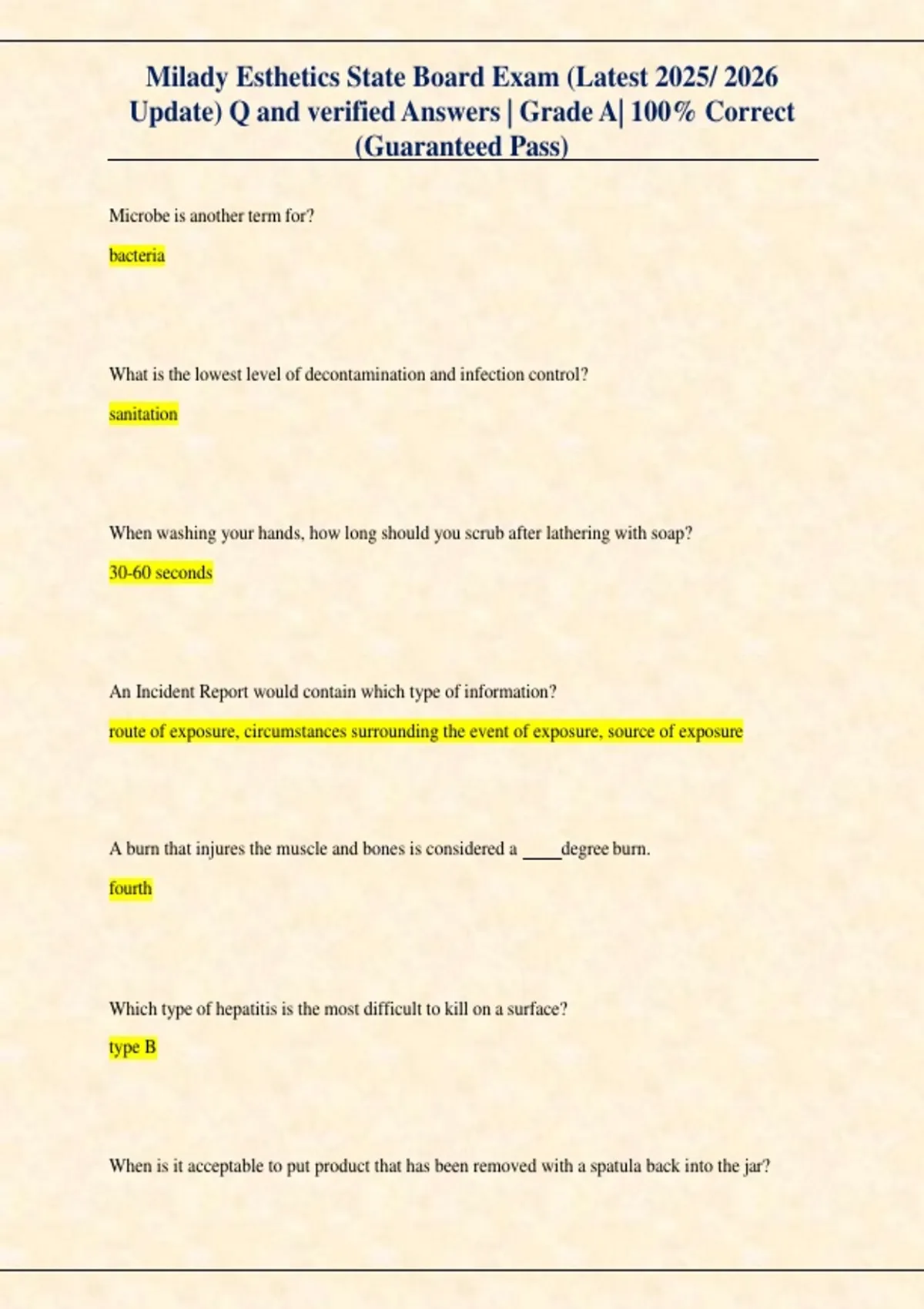 , Milady Esthetics State Board Exam (Latest 2025/ 2026