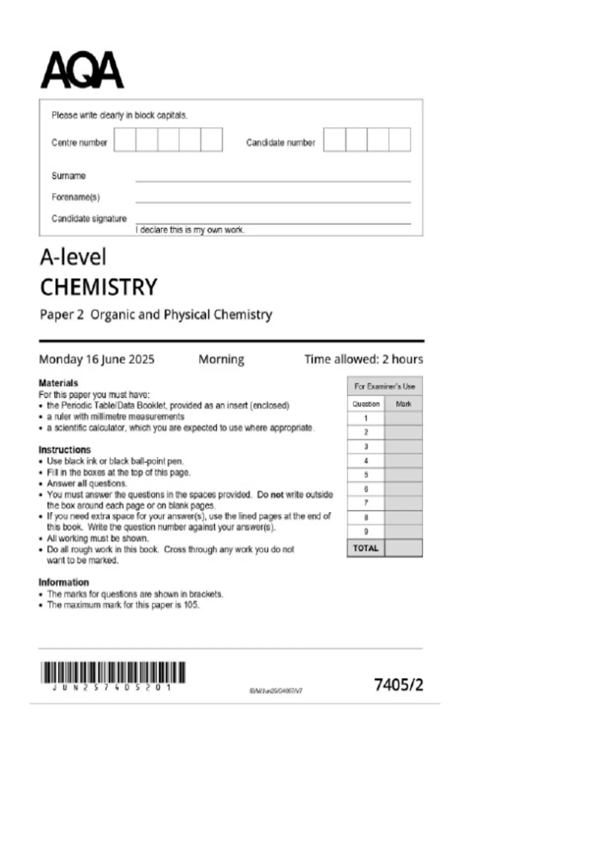 aqa a level chemistry paper 2 2025 merged with mark scheme